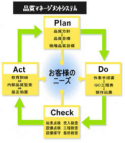 お客様への信頼と満足を第一に考え、最高の製品、最高のサービスを提供することが当社の品質マネージメントシステムの目指すものと考えております。